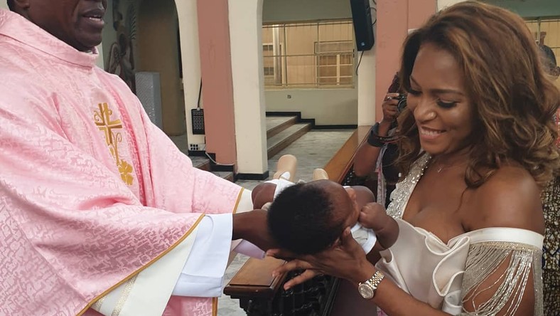 Linda Ikeji dedicates her baby boy in church
